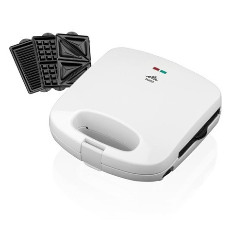3 az 1-ben szendvicssütő – szendvicssütő, gofrisütő, grill. Előnyök: 3 cserélhető lap (szendvics – háromszög, gofri, grill) Tapadásmentes felületű munkalapok a könnyű használat és tisztítás érdekében Működési (piros) és hőmérséklet (zöld) fényjelző Egyedülálló ON / OFF kapcsoló a biztonságos és kényelmes be/kikapcsoláshoz Lapjai vízszintes pozícióba nyithatóak 180°-al Automatikus hőmérséklet szabályozás a szendvics könnyű elkészítéséhe