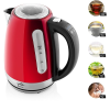 Vízforraló - hőmérséklet szabályozás, rozsdamentes, űrtartalma 1,7 l, fekete, piros és ezüst kivitel, 2100 W energiafogyasztás, szűrő, LED világítás, forgótalp, rejtett spirál és kábeltartó rekesz, automatikus kikapcsolás, működésjelző lámpa, túlmelegedés és víz nélküli működés elleni védelem, hangjelzés, hőmérséklet megtartása, vízszint jelző, kivehető szűrő ETA Ela Digi 9598 90010 vízforralóA piros és rozsdamentes acél kialakítású ETA Ela D
