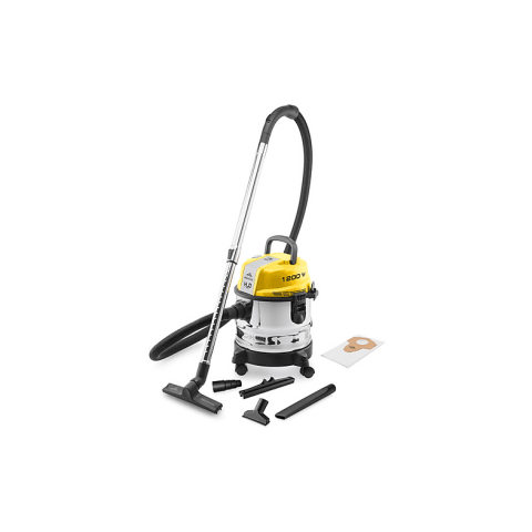 Többfunkciós porszívó - alkalmas szőnyeg, kemény padló, linóleum, fapadlók és úszó padló tisztítására, tisztítás módja felszívás, nedves tisztítás és száraz tisztítás, gyűjtőtartály űrtartalma 15 l, padlókímélő kerekek, HEPA szűrő, vezérlés a készüléken, kábel hossza 5 m, hatósugár 8 m, teleszkópos cső, szűrő a csomag része, vezetékes, zajszint 89 dB, inox és sárga kivitel Olyan hatékony társra van szükséged, amely nem csak otthon gondosko