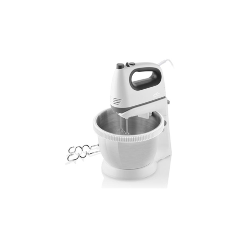 Kézi habverő rozsdamentes acél forgótállal. Erőteljes AC motor és 300 W teljesítmény. Rozsdamentes acél tál, habverő kampók és habverők a csomagban.