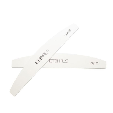 Az ETB Nails Fehér Félhold Körömreszelő professzionális, ellenálló és rugalmas reszelő, amely természetes és műköröm formázására is alkalmas. Hatékonyan és gyorsan távolítja el a kisebb dudorokat, és sima körömfelületet biztosít.. Jellemzői:. Félhold alakú, fehér kialakítás. Alkalmas természetes és műkörmökhöz. Nagy szemcseméret és két munkafelület. Méretek: 178mm hosszú, 3mm vastag, 15-30mm széles