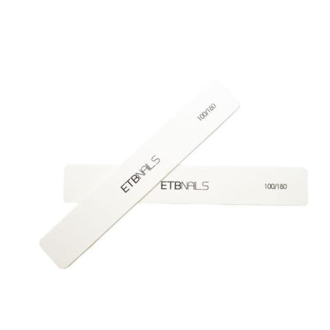 Az ETB Nails Fehér Téglalap Alakú Körömreszelő professzionális manikűrhöz ideális, kétoldalú reszelő, amely alkalmas zselés és akril körmök formázásához és zselé eltávolításához.. Jellemzői:. Két munkafelület a hatékony reszeléshez. Ergonomikus kialakítás. Alkalmas zselés és akril körmökhöz. Méretek: 178mm hosszú, 3mm vastag, 30mm széles