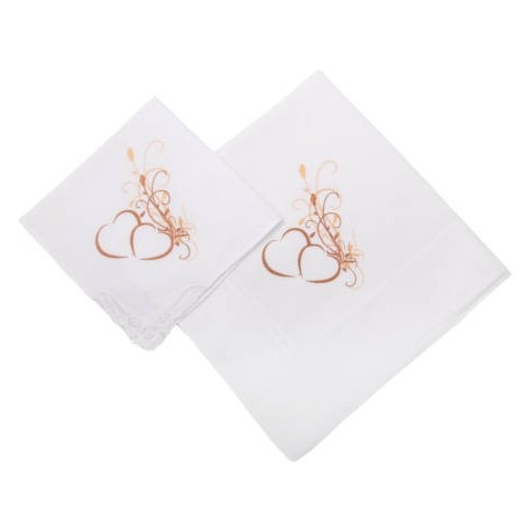 1 kép ETEX L22 női eljegyzési textilzsebkendő szív motívummal tasakban