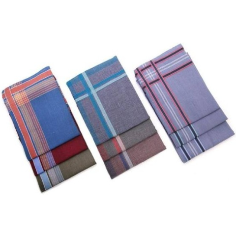 6 darabos férfi textilzsebkendő csomag műanyag tasakban A szokásosnál egy picivel nagyobb, hagyományos férfi textilzsebkendő sötét árnyalatokban hétköznapi használatra. Tulajdonságai Anyag: 100% pamut Méret: kb. 41,5 x 41,5 cm Mennyiség: 6 db / tasak Csomagolás nylon tasak Színek és minták: hagyományos, sötétebb árnyalatú vegyes színek, egyszerű szegélycsíkok és minták Kiváló minőségű cseh férfi, női és gyerek textilzsebkendők széles választ