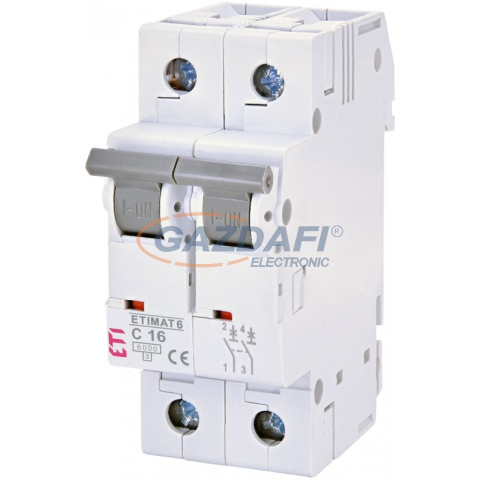 1 kép ETI 002143516 ETIMAT6 C16A 2p 6kA kismegszakító, 2 modul