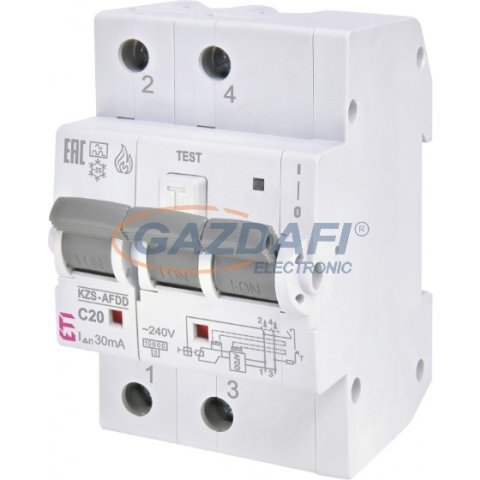 1 kép ETI 002173875 KZS-AFDD 3M 2p A C20A 30mA áram-védõkapcsolós kismegszakító