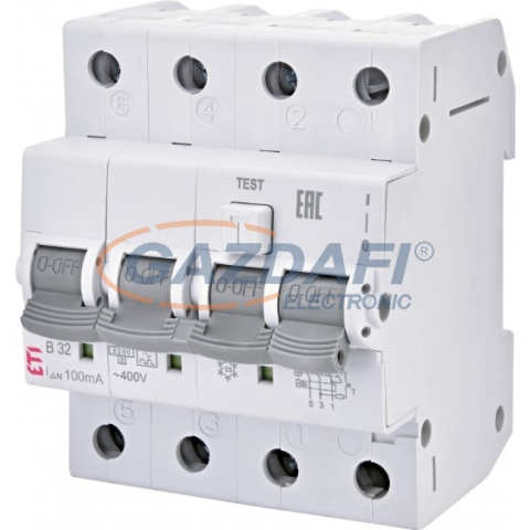 1 kép ETI 002174404 KZS-4M 3p+N A B16A 100mA áram-védőkapcsolós kismegszakító