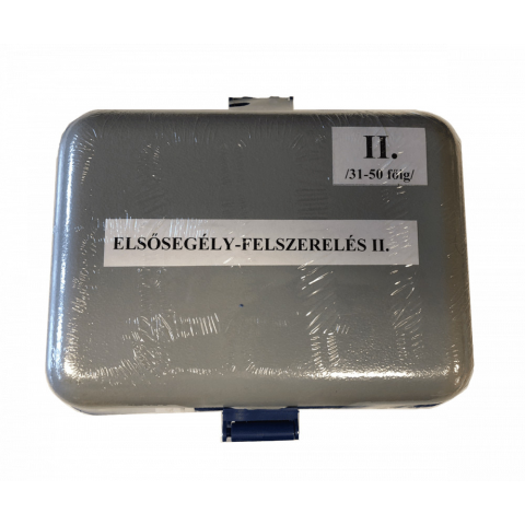 Egészségügyi mentődoboz II-es típusú munkahelyi elsősegély felszerelés, kemény dobozos kivitelben. 31-50 főig, üzemek, munkahelyek részére. Egészségügyi mentődoboz II-es típusú munkahelyi elsősegély felszerelés, kemény dobozos kivitelben. 31-50 főig,