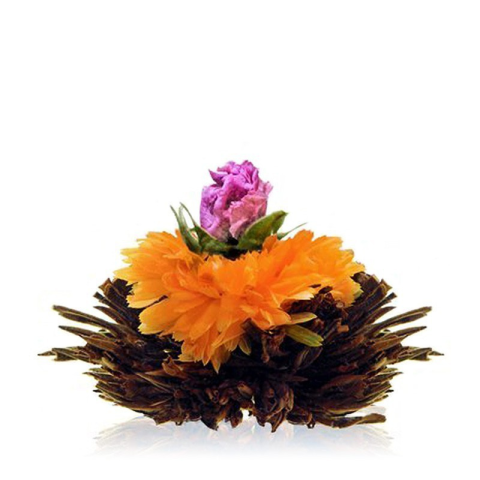 RAKTÁRRÓL AZONNAL! Virágzó fekete teagolyó bazsarózsa- és körömvirágokkal (kancsó méret, kb. 0.5 liter) Összetétel: fekete tea (95%), körömvirág és bazsarózsa (5%) ELKÉSZÍTÉSI JAVASLAT A virágzó tea különleges élményt kínál a teakedvelőknek. A gömb bel
