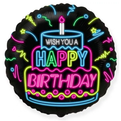 1 kép EU Happy Birthday Neon fólia lufi 46 cm (WP)