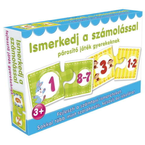RAKTÁRRÓL AZONNAL! Ismerkedj a számolással - Fejlesztő játék Tartalma: 12 pár puzzle (24 db puzzle kártya) Anyaga: papír Doboz mérete: 28,3x17,5x4,3 cm Használata 3 éven felülieknek ajánlott.