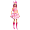 Mattel, Barbie Dreamtopia Unikornis baba A Barbie Dreamtopia hercegnő babája egy csodálatos rózsaszín, szivárvány mintás ruhában érkezik, ami mesés és színpompás kinézetet kölcsönöz neki. A rózsaszín unikornis szarv és haj különleges varázslatot ad a megj