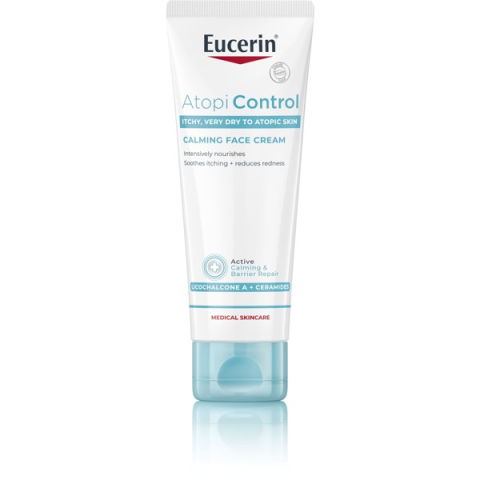Arckrém - atópiás, ekcémás és problémás bőrre ajánlott, dermo kozmetikum, Az EUCERIN AtopiControl arckrém kifejezetten a száraz, atopiás és irritációra hajlamos, reaktív bőr igényeire lett kifejlesztve. Erős nyugtató és regeneráló összetevőket tartalmaz, amelyek erősítik a