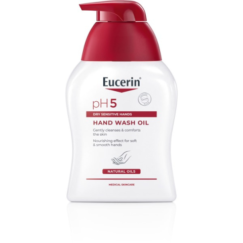 Testápoló olaj - tisztító, hidratáló és bőrpuhító dermo, természetes, száraz bőrre, érzékeny és száraz bőrre, űrtartalma 250 ml EUCERIN pH5 Hand Wash Oil is a highly effective cleanser designed for sensitive and dry hand skin. With a gentle formula that respects the skin's natural microbiome, this cleansing oil offers gentle c