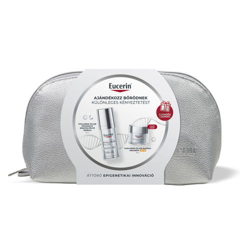 Szett tartalma: Eucerin Hyaluron-Filler Epigenetic ráncfeltöltő szérum 30ml: Epicelline® hatóanyagot tartalmazó ráncfeltöltő krém, amely a gyökereknél újraaktiválja a bőr fiatalos génjeit, és fiatalabbá teszi a bőrsejteket. Hialuronsavval hidratálja