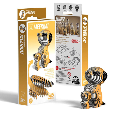 A szurikáták szórakoztató, figyelmes kis állatok, akik most egy 3D újrahasznosított karton puzzle-ban várnak, hogy te is összerakhasd őket! Rakd ki ezt a vidám állatot, és hozd el a sivatag életét! Fejleszd a kézügyességed! Az EUGY nemcsak kreativitás