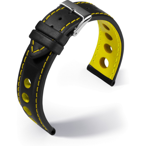 1 kép Eulit Barington Racing bőr óraszíj, fekete/sárga 18mm