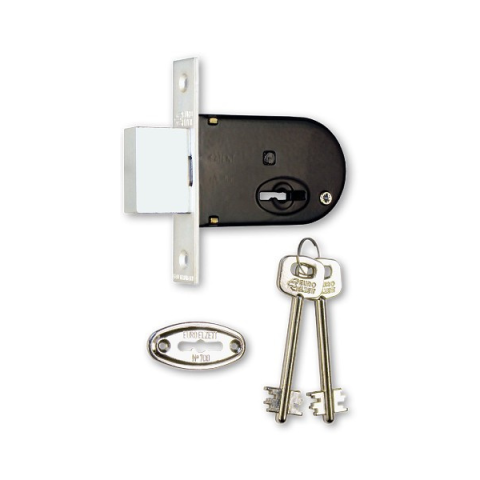 Elzett 700 bevéső reteszzár 2 db kulccsal. Kétcsukású bevéső reteszzár, kéttollú kulccsal. Kivitel Előlap: horganyzott ezüst. Szekrény: festett fekete.