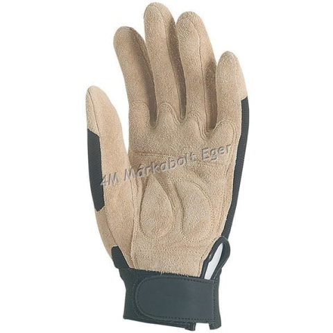 908, 909, 910 • kifordított sertésbőr: kifelé natúr velúr, befelé puha színbőr tenyér, artéria- és körömvédő (előbbiek szivaccsal párnázottak) • rugalmas fekete poliészter kézhát • elasztikus mandzsetta, állítható tépőzáras szegéllyel • méret: 8, 9, 10-es