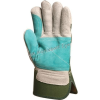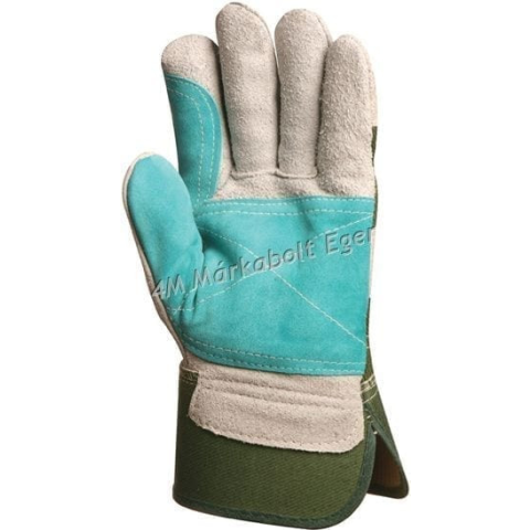 154, 154L, 154/2 • szürke marhahasíték tenyér • zöld marhahasíték megerősítés a mutató- és hüvelykujjon, valamint a tenyéren • erős 300 g/m vászon kézhát és mandzsetta • artéria-, köröm- és ökölcsontvédő • pamut tenyérbélés • méret: 10-es • 154/L: extra n