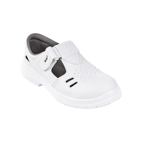 BUBO (S1), BUBI (O1) SZANDÁL LCG49, LCG48 • tépőzáras szandál acél lábujjvédővel • folyadékoknak jobban ellenálló, kiválóan szellőző fehér mikroszálas felsőrész • antisztatikus, olajálló, hajlékony, kétrétegű, fehér PU talp, ütődéselnyelő sarokkal