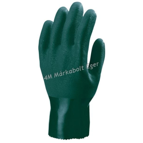 3718, 3719, 3720 • 27 cm hosszú, pamutra kétszer mártott, zöld polimer védőkesztyű • sav-, lúg-, olaj- és vegyszerálló • mikroorganizmusok elleni védelem • forró folyadékban is használható • érdesített, csúszásbiztos külső neoprén réteg • izzadságszívó, A