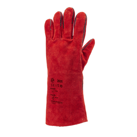 2631, 2633 • szikraálló piros marhahasíték • hőszigetelő pamutbélés • 100°C kontakt hő ellen véd >15 sec • 2633: antisztatikus tulajdonsággal, vastagabb béléssel és lángálló Kevlar® szállal • méret: 10-es • csomagolás 60/12 EU szabvány: EN420, EN388: 313