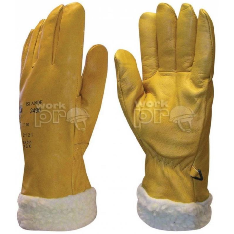 Islande: kiváló minőségű, 32 cm hosszú téli védőkesztyűsárga színmarhabőr tenyér és kézhátteljes műszőrme belső bélés és mandzsettahideg klíma és kontakt hideg hatása elleni nagyfokú védőképességméretek: 6, 7, 8, 9, 10 és 11-escsomagolás: 60/6EU szabvány: EN420, EN388: 3123, EN511: 220