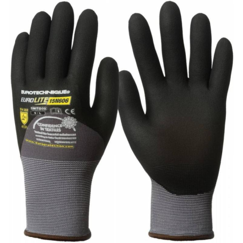 EUROLITE 15N606 ÖKÖLCSONTIG FEKETE NITRIL MÁRTOTT KESZTYU:15-ös kötésű, erős szakítás- és kopásállóságú szürke nylon / spandexökölcsontig fekete szellőző mikrohabosított nitrillel mártottszellőző kézhát, gumírozott mandzsettakönnyű, kiemelten komfortos, teljesen kézre simuló formai kialakítás, tenyerén és a kézháton is egyaránt biztosított szellőzésselÖko-Tex minősítésszéles méretszortimentMÉRET: 6-osCSOMAGOLÁS: 100/10 ? páranként külön csoma