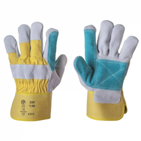 1 kép Euro Protection Kesztyű hasított marhabőr rakodókesztyű vászon kézhát sárga/szürke/ciánkék 12