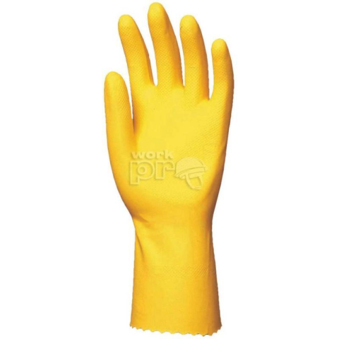SÁRGA HÁZTARTÁSI GUMIKESZTYU:sárga színű természetes latexpamutbolyhozott belsővéd sav, lúg, hipó, háztartási vegyszerek és mikroorganizmusok ellen0,45 mm vastag, 30 cm hosszúcsúszás ellen érdesített tenyérMÉRET: 7-esCSOMAGOLÁS: 100/10EU szabvány: EN420, EN388: 1010, EN374-1, 374-2, 374-3: KL