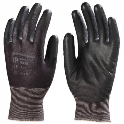 1 kép Euro Protection Kesztyű kötött szál PU tenyérmártással (100%poliamid) fekete 9