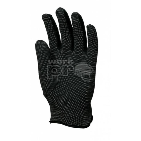 FEKETE MINIPETTYES PAMUTKESZTYU:fekete, 100% pamut védőkesztyűtenyerén csúszás elleni speciális mini PVC pöttyözésSÚLY: 35-35 gméret: 7-esCSOMAGOLÁS: 300/12EU szabvány: EN420, 1. kat.