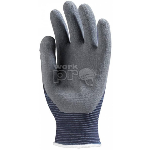 EUROFLEX REDOZÖTT LATEX MÁRTOTT KÉK KESZTYU:EUROFLEXsűrű, 15-ös kötésű, rugalmas nylon száltenyéren kiváló fogásbiztosságú mártáselasztikus mandzsetta, szellőző kézhátkék nylon szál, redőzött szürke latex mártásméret: 7-escsomagolás: 100/10EU szabvány: EN420, EN388: 3131