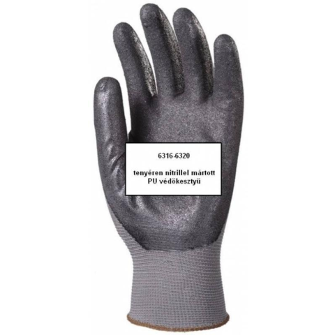 MIKRO HABOSÍTOTT TENYÉREN NITRIL MÁRTOTT SZÜRKE KESZTYU:jól simuló, 13-as kötésű, nagy szakítószilárdságú, szürke, nylon alapkesztyűtenyerén fekete mikrohabosított finom nitril mártás, csúszás ellen érdesítvegumírozott, rugalmas mandzsettaméret: 10-escsomagolás: 100/10EU szabvány: EN420, EN388: 4121