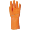 3818, 3819, 3820 • pamutra mártott saválló narancs színű krepp latex • 1,8 mm vastag, 33 cm hosszú, csuklóban szűkített • vágásbiztosság, megerősített csúszás elleni érdesítés • vegyszerek és mikroorganizmusok elleni védelem • méret: 8, 9 és 10-es • csoma