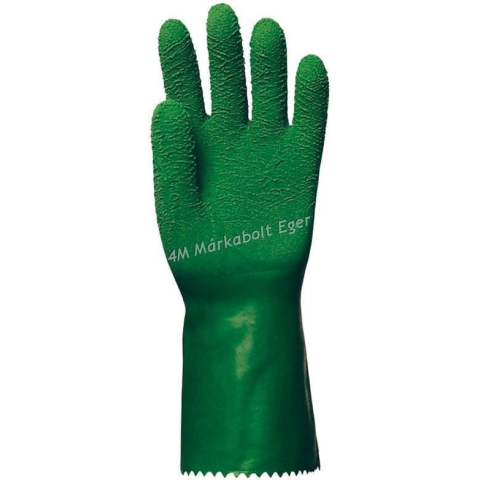 3815 • pamutra mártott, érdesített zöld latex • 32 cm hosszú, csuklóban szűkített • vágásbiztos és csúszásmentes nagy szakítószilárdságú védőkesztyű • méret: 10-es • csomagolás: 60/12 EU szabvány: EN420, EN388: 2221 3815 • pamutra mártott, érdesített