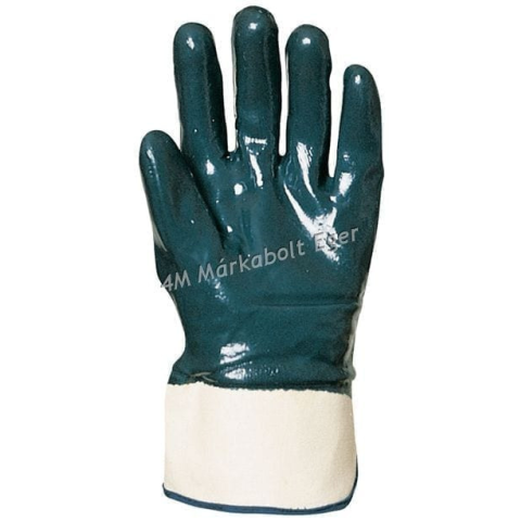 9618, 9619, 9620 • pamutra csuklóig kétszer mártott kék nitril • mártott kézhát, merev, biztonsági mandzsetta • nedves körülmények közt is használható Ecoline® változat mechanikai ártalmak ellen • méret: 8, 9 és 10-es • csomagolás: 100/10 EU szabvány: EN