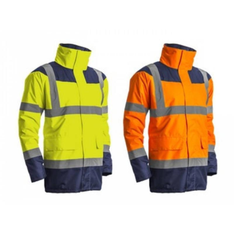 KETA HI-VIZ SÁRGA KABÁT:7KETY sárga/sötétkékPU-val vízhatlanított fluoreszcens Oxford 300D poliészter külső, taft belső140 g/m2 hőszigetelő poliészter bélésrejtett kapucni illetve kétkocsis cipzár tépőzáras fedéssel végig az álló gallérighegesztett, vízhatlan varrások, kötött mandzsettakét oldal- és két belsőzseb plusz egy szitázó zsebMÉRET: SEU szabvány: EN ISO 20471:2013 (Cl 3), EN 343:2003 + A1:2007 (CL 3.1)