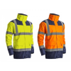 KETA HI-VIZ SÁRGA KABÁT:7KETY sárga/sötétkékPU-val vízhatlanított fluoreszcens Oxford 300D poliészter külső, taft belső140 g/m2 hőszigetelő poliészter bélésrejtett kapucni illetve kétkocsis cipzár tépőzáras fedéssel végig az álló gallérighegesztett, vízhatlan varrások, kötött mandzsettakét oldal- és két belsőzseb plusz egy szitázó zsebMÉRET: SEU szabvány: EN ISO 20471:2013 (Cl 3), EN 343:2003 + A1:2007 (CL 3.1)