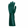 Könyékig érő vegyszerálló védőkesztyű 40 cm hosszú, pamutra kétszer mártott, zöld polimer védőkesztyű Sav-, lúg-, olaj- és vegyszerálló Mikroorganizmusok elleni védelem Forró folyadékban is használható Érdesített, csúszásbiztos külső neoprén réteg Izza