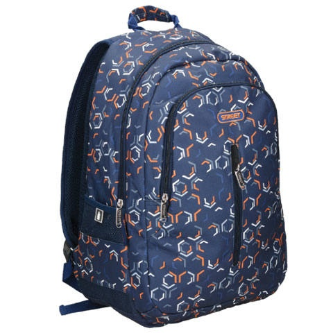 Egy különleges mintázatú iskolatáskát szerezhetsz be gyermeked számára, mely kifejezetten hasznos lesz számára. Az iskolatáska kék alapszínt kapott, melyen háromszögletű minták jelennek meg. Nagy rekeszében jól elfér minden, amire egy nap szükség lehet az iskolabán, kisebb rekeszeiben pedig az apróságokat lehet tárolni. A táska oldalain kulacstartó zsebek