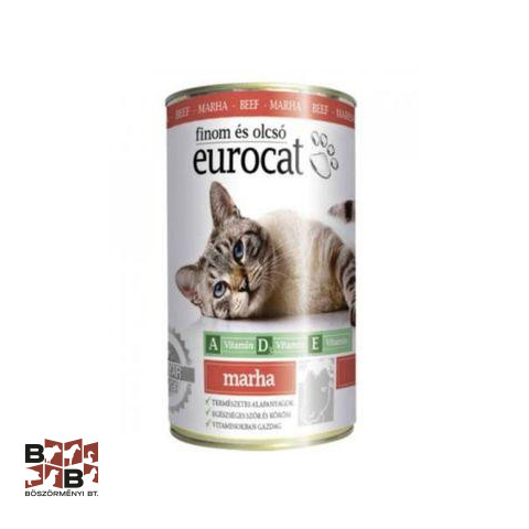 EURO CAT MARHÁS KONZERVTeljes értékű eledel, amely összetevőivel hozzájárul négylábú kedvenceink boldog mindennapjaihoz. LeírásAz Euro Cat konzerv ízletes marhás konzervtáp felnőtt macskáknak.Isteni marhás receptúra alapján készült ínycsiklandó nedvese