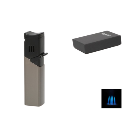 A Eurojet 4 Jet fekete–antracit színű öngyújtó egy elegáns, modern és többfunkciós szivargyújtó, amely a stílust, a precizitást és a megbízhatóságot ötvözi. A négy erőteljes szúróláng gondoskodik az egyenletes és gyors gyújtásról, így még szeles környezetben is hibátlanul teljesít. A masszív fémházas kivitel tartósságot és prémium megjelenést biztosít, míg a fekete és roséarany színkombináció elegáns, férfias hatást kelt.A fúvókákat záróf