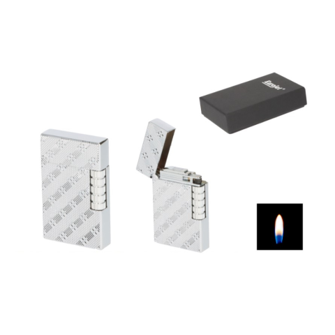 A króm színű Eurojet Milan Stein öngyújtó modern, letisztult és prémium megjelenésével tökéletes választás mindennapi használatra és ajándéknak egyaránt. A készülék felületét egy igazán különleges, ferde irányban futó, ismétlődő sávos-dombornyomott minta díszíti. Ez a textúra apró, hosszúkás téglalap alakú elemekből áll, amelyek diagonális irányban sorakoznak, így elegáns, mégis karakteres megjelenést kölcsönöz az öngyújtónak. A minta n