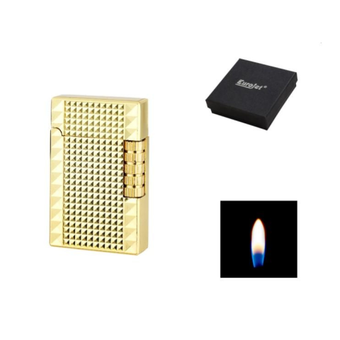 Az arany színű Eurojet Milan Stein öngyújtó elegáns, látványos és prémium megjelenést kínál. A készülék előlapját borító, különleges gofri mintás felület (apró négyzetes, piramisszerű struktúra) nemcsak karakteres és figyelemfelkeltő dizájnt teremt, hanem kényelmes és biztos fogást is biztosít használat közben.A klasszikus stílusú öngyújtó normál sárga lánggal működik, amelyet a megbízható, tűzköves gyújtómechanizmus hoz létre. A robusztus f