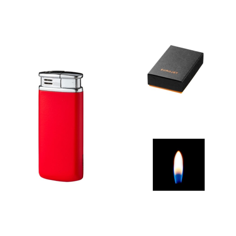Az EuroJet Piezo gyújtású piros-króm színű öngyújtó kiváló minőségű, tartós anyagokból készült, így ideális mindennapi használatra.