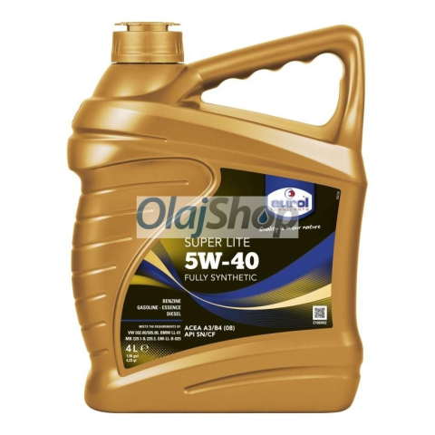 Teljesen szintetikus olaj benzin- és dízelmotorokhoz, turbóval vagy anélkül Az Eurol Super Lite 5W-40 egy teljesen szintetikus motorolaj személygépkocsik és könnyű haszongépjárművek benzin- és dízelmotorjaihoz. Ez az olaj alkalmazható katalizátorral fe