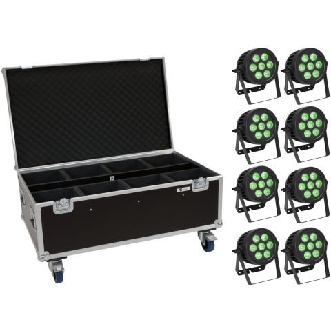 1 kép Eurolite Set 8x LED IP PAR 7x8W QCL Spot + Case with wheels