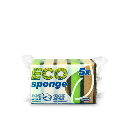 Mosogatószivcs csomag, 5db-os. Habja 30% természetes biopoliol, dörzsi műanyagtartalma 100% rePET. A természetes összetevők hatékonyságukban és tartósságukban megegyeznek a szintetikuséval, környezetterhelésük jelentősen alacsonyabb. 1 db mérete: 9,8 x 7,